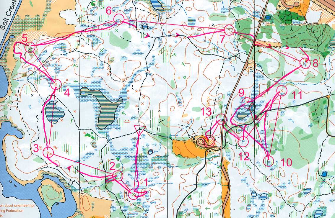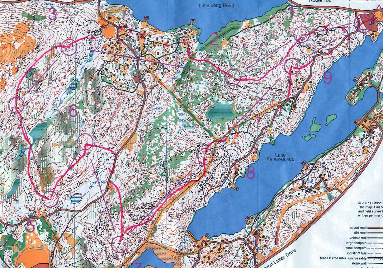 1. WCOC Sprints at Bennett's Farm, Ridgefield, CT, Janaury 28. Sprint C, 2.4 km, 90m, 20:13. First orienteering in two and a half months, a little rusty but not bad, keeping my eyes open pretty well. Green was quite variable, didn't want to mess to some of it (multi-flora rose or something similar), whereas in other places it was just a matter of picking your way. One mistake, circled around at #4 before I realized which cliff the flag was on.